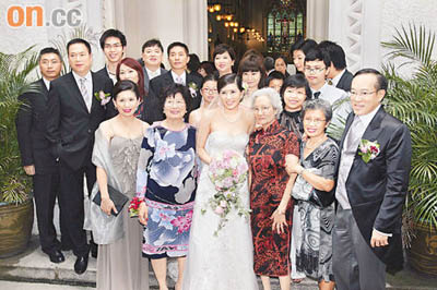 婚禮上,牧師祝福一對新人時,兩人相當(dāng)感動,互相拭淚,但始終沒有在儀式上親吻。直至走出禮堂大合照時,兩人才肯應(yīng)大會攝影師要求以蜻蜓點水式親吻。新郎被問到心情如何時也不再含蓄:“很感動呀!”