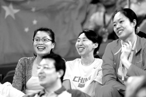 葉莉和前隊友苗立杰坐在一起,戴著眼鏡的葉莉一直在默默為姚明加油。不過當(dāng)中國男籃最終大比分輸?shù)舯荣惡螅~莉的神色也有些黯然……