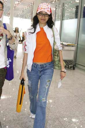 陳慧琳一直很會打扮,連趕飛機也打扮得很有氣質。黑墨鏡、襯衣、牛仔褲,簡單的幾件單品經她搭配過后,穿在身上即顯得星味十足。