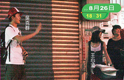 吳克群和提著大包小包的助理上車,之后又接了公司同事,三人一同來到八德路四段一間錄音室。十分鐘后,戴著白色棒球帽、個頭嬌小的王心凌,忽然出現在錄音室門口,悄悄進門。在錄音室待到晚上六點半,吳克群和王心凌先后走出來,在門口先和同事道別,接著兩人和助理一同坐上吳克群的休旅車,驅車前往慶城街的一家餐廳。