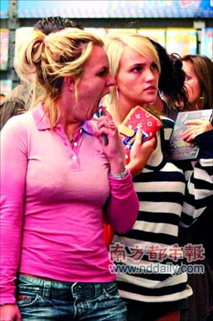 姐妹倆的出現讓唱片行經歷了一陣騷動,但不知是不是近日工作太過勞累,布蘭妮邊逛邊打了一個大大的哈欠。