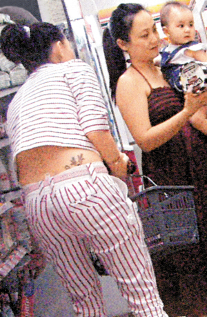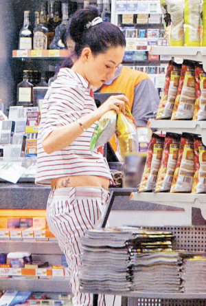 張柏芝凸肚肥臀逛便利商店 彎腰露性感文身(圖)