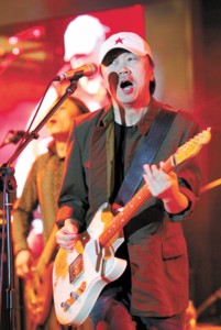 昨晚演出前,老崔應(yīng)邀做客“LOVERADIO搖滾唱談會(huì)”,頭上還是那頂標(biāo)志性的白色鴨舌帽,以至于在場有記者追問:這是否已經(jīng)成為上場表演的慣例?崔健解釋說,五角星加鴨舌帽的裝束是一種偶然,“我對表演服裝的唯一刻意就是不想太沒有個(gè)性,別的就沒想太多”。自言在上海演出已經(jīng)不是一次兩次的老崔,對這次表演還是格外看重,他說,因?yàn)槲枧_(tái)設(shè)在商業(yè)區(qū)的街心廣場,直接面對的觀眾大部分都是普通老百姓,這是第一次,也是一大挑戰(zhàn)。也正因此,代表作《一無所有》理所當(dāng)然地成為了必唱曲。