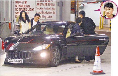 樂基兒(左)昨駕著黎明送她的跑車到加油站加油,他(右)則坐后座當(dāng)乘客。