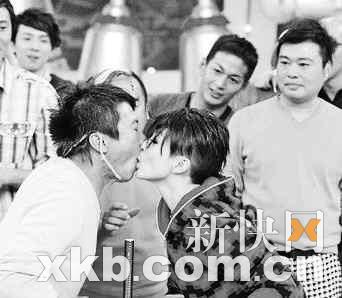 玩吸乒乓球游戲被整蠱 錢嘉樂、湯盈盈熱吻(圖)