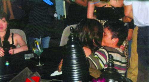 本報咨詢專業人士指出:“濕吻照并不是長焦鏡頭拍的!”拍攝距離應該是兩三米左右。還有網友指出照片前面有一個黑色的陶器,上面那道白光就是閃光燈,這么近還開閃光燈不可能不被發現,因此應該是一起耍的人拍的。“
