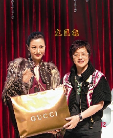 李嘉欣接受主辦方贈品。(來源:香港《文匯報(bào)》)