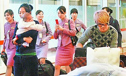 因他接下來到農歷春節前,都要為新專輯留在臺灣籌備,一直希望全家人能團聚的他,索性將老婆、兒子都接來臺灣陪伴,近4個月大的Joe昨首度搭機,不太哭鬧,但因嬰兒推車、衣服、奶瓶等育兒用品多,曹格昨說:“光他的東西就3個行李箱,我一個人推,好重耶!”