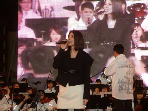 中新網(wǎng)12月22日電 陳慧琳前晚到澳門出席回歸慶祝活動(dòng),與五十位青少年組成的澳門青年交響樂團(tuán)合作,演繹《熏衣草》。