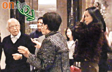 晚上十時許,梁朝偉先行步出,但發(fā)覺其座駕還未駛回酒店,于是站在停車場一角致電給司機,而嘉玲則隨后照顧奶奶及一眾親友。現(xiàn)場所見,嘉玲全程攙扶奶奶,又不時搭奶奶膊頭,有說有笑,在旁的偉仔看到二人相處融洽,也不禁會心微笑。當座駕到場后,嘉玲即護送奶奶及長輩上車離開后,隨即與偉仔登上另一輛七人車返家。