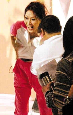 在曾志偉欲脫丘凱敏的褲子時,曾華倩已經(jīng)阻止并警告他說:“有膽量去搞阿姐(汪明荃)!”但曾志偉借酒勁還是脫下了丘凱敏的褲子,隨后又來脫曾華倩的褲子。曾華倩氣急,回頭給了曾志偉一記耳光,讓他一下子清醒過來。