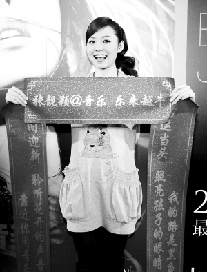 恰逢小年,簽售現場節日氣氛十分濃郁,背景板上貼著一副由張靚穎新專輯中歌曲名字組成的大紅對聯,這同時也是張靚穎送給每位到場歌迷的節日禮物,之前透露準備給第一個到場排隊歌迷的特別禮物是張靚穎用了5個小時親手織的一頂紅色毛線帽,寓意鴻運當頭。而現場有兩位并列第一的歌迷,來自北京的歌迷大度地表示:“我們倆是一起來的,但我決定把禮物讓給他,因為他是從沈陽來的。”
