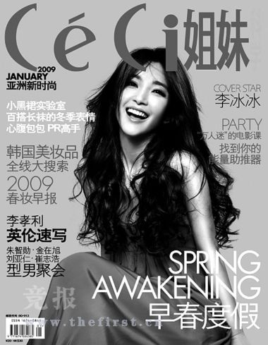 韓國一 線雜 志《CeCi》(中文版)的1月封面刊登了“中韓兩國文化交流大使”李冰冰的照片,李冰冰也成為亞洲首位登上該雜志封面的中國面孔。