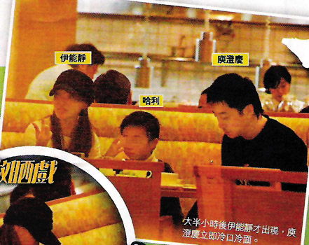 庾澄慶和伊能靜于新春期間帶上7歲的兒子哈利(庾翰睿)到北海道旅游。根據最新一期香港雜志報道,六日的旅程里伊能靜狂打“親情牌”,希望與丈夫“箍煲(復合)”,但庾澄慶冷漠對待,一有機會,他便離開老婆留在酒店休息。