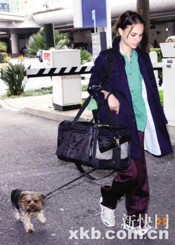 娜塔莉·波特曼牽狗赴機場 打扮俏麗似學生妹(圖)