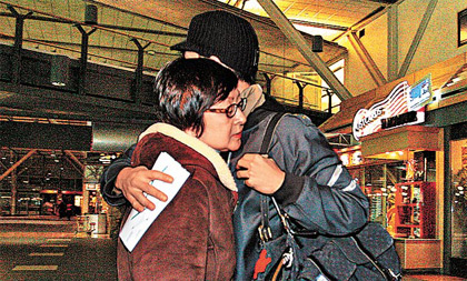 抵閘口時(shí),Edison母子依依不舍深情擁抱,Edison跟母親說(shuō)聲“Take care(保重)”后便由公司同事陪伴入閘,兩保鏢未有隨行。據(jù)知Edison乘坐的是國(guó)泰航班商務(wù)客位。