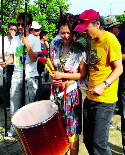在劇照上,譚維維穿著清涼,再加上混合了各種民族元素的鮮艷裝飾和紋身,火辣的身材暴露無疑。更加令人驚奇是譚維維的發型,一縷縷火箭般的沖天直發,頗有漫畫卡通人物的感覺。而崔健打造出這般造型,是為了表現未來的風格,還是僅僅用于樂隊的表演,尚不得而知。激烈的鼓樂、動感的舞蹈、火辣的裝束、夸張的發型,崔健譚維維共同打造的這部發生在2029年的未來成都故事,最終將呈現出一番怎樣的效果,讓人非常期待。