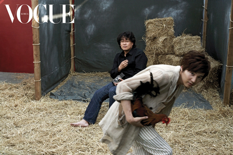 中新網(wǎng)5月27日電 近日,電影《母親》的導(dǎo)演奉俊昊和男主角元彬一同站在了鏡頭前。奉俊昊和元彬一起為時(shí)尚雜志《VOGUE》拍攝了畫報(bào)。