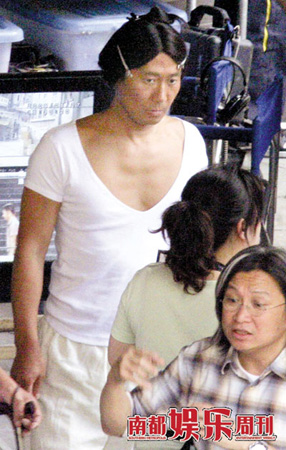 在《十月圍城》中,黎明放下天王巨星的架子,扮演一名乞丐,也是“六義士”之一。乞丐已經(jīng)是一個夠倒霉的角色了,沒想到片場休息,黎明把假發(fā)一梳弄,竟成了驚世駭俗的天王級“如花”,不過據(jù)說扮丑很容易拿影帝,黎明顯然是下定決心不怕犧牲了,剛剛出演過梅蘭芳的粉面就直接被化妝師糟蹋成黑臉,還特別給這位沒錢理發(fā)的乞丐先生留了一頭換七八糟的長發(fā)。長發(fā)未免有點熱,黎天王倒也挺能應付,脫了戲服穿件“老頭衫”,還用兩個發(fā)卡把頭發(fā)梳弄上去,有利散熱。攝影師的長鏡頭在片場找了很久,才終于在導演棚里找到了“黎如花”。