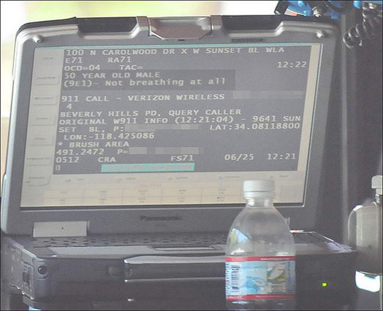 洛杉磯當地時間26日凌晨24時21分,洛杉磯消防隊的護理人員突然接到杰克遜身邊的工作人員從杰克遜位于洛杉磯的家中打來的急救電話,聲稱:“一名50歲的男性沒有了呼吸。”急救人員8分鐘后抵達時才發現出事的是“搖滾天王”邁克爾·杰克遜,而當時他已經沒了呼吸,也沒有了脈搏。醫務人員迅速將他抬上救護車,緊急送往加州大學洛杉磯分校醫療中心。