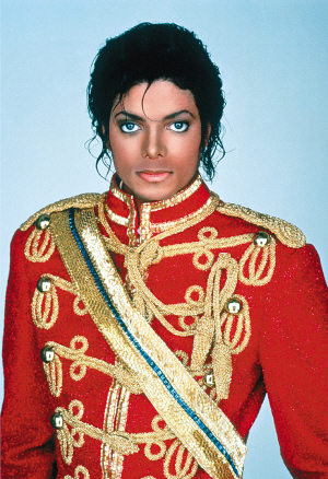 邁克爾·杰克遜(Michael Jackson)被譽為流行音樂之王(The King of Pop),是繼貓王之后西方流行樂壇最具影響力的音樂家,其成就已超越貓王,是出色的音樂全才,在作詞,作曲,場景制作,編曲,演唱,舞蹈,樂器演奏方面都有著卓越的成就。邁克爾與貓王、披頭士兩組歌手并列為流行樂史上最偉大的不朽象征,他開創了現代MTV,他把流行音樂推向了巔峰,他融合了黑人節奏藍調與白人搖滾的獨特的MJ樂風,時而高亢憤疾、時而柔美靈動的聲音,空前絕后的高水準音樂錄影,規模宏大的演唱會無不在世界各地引起極大轟動.他擁有世界銷量第一的專輯《THRILLER》,銷量達1.04億(2006年吉尼斯世界紀錄認證數據)。據2006年底統計,其正版專輯全球銷量已超過7.5億張,被載入“吉尼斯世界紀錄大全”。他是音樂史上第一位在美國以外賣出上億張唱片的藝術家。他魔幻般的舞步更是讓無數的明星效仿。2006年,吉尼斯世界紀錄頒發了一個最新認證:世界歷史上最成功的藝術家!他一個人支持了世界上39個慈善救助基金會,保持著2006年的吉尼斯世界個人慈善紀錄,是全世界以個人名義捐助慈善事業最多的人。他患有白癜風皮膚病,皮膚呈白色。