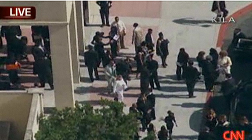 由杰克遜父母及家族成員所乘坐的20余輛黑色禮車,于當地時間上午8時前由洛杉磯西邊的Encino豪宅出發(fā)。
