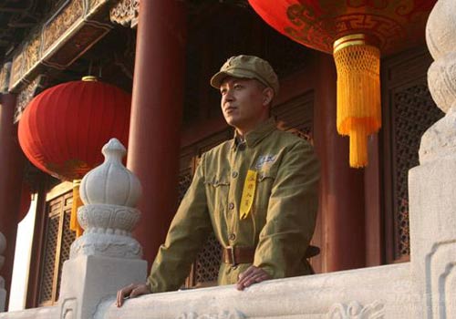 扎宮燈的“封建殘余”藺老爺可不普通,雖然是配角,舉手投足都是戲。不管是他抬頭望著拿空慈竹的老屋頂,還是感慨地看著天安門城墻上隨風飄動的那些有生以來做得最大的紅燈籠,還是在開國大典時拿下帽子向天安門向毛主席深鞠一躬,都讓人心中泛起一種說不出的感覺,是去舊迎新?據葉導介紹,這位藺老爺就是著名的相聲表演藝術家田立禾。