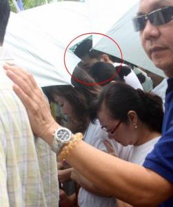 連日來(lái)“藏身”朱宅的華仔,在朱父出殯之日終“破功”,雖然他“被逼”出來(lái)面對(duì)眾人,但始終嚴(yán)守最后一道防線,朱家親友采用“傘遮人”政策(全體打開(kāi)雨傘),讓華仔混在親友當(dāng)中,并由一名高大印裔保鏢擋在其身邊,一直用手壓低華仔的頭,讓他由頭到尾“沒(méi)臉見(jiàn)人”。