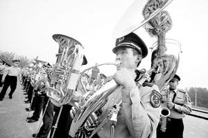在即將到來的國慶60周年閱兵和群眾游行活動中,他們是最為特殊的一支隊伍:第一個入場,最后一個離場;不受檢閱,但用45首樂曲 (部分曲目重復)控制著整場慶典的節奏。