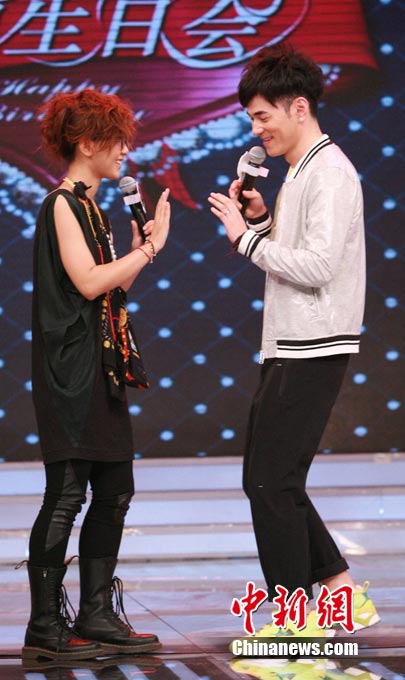 中新網(wǎng)7月15日電 近日,周筆暢做客深圳衛(wèi)視大型明星情感秀節(jié)目《大牌生日會(huì)》。親朋好友到來(lái)令周筆暢現(xiàn)場(chǎng)活躍,不但與李晨大跳恰恰,還展示“熊貓舞”,可愛(ài)動(dòng)作令全場(chǎng)氣氛火爆。攝影/王忠燕