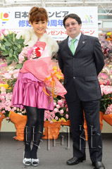 日本是哥倫比亞第二大鮮花生產(chǎn)及出口對(duì)象國(guó),本次活動(dòng)也意在展示哥倫比亞的產(chǎn)品,因此典禮會(huì)場(chǎng)滿布哥倫比亞產(chǎn)康乃馨和玫瑰,對(duì)此椿姫高興地表示“從沒有被這么多花簇?fù)恚媸翘亮恕薄?