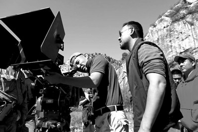 《讓子彈飛》雖然走的是西部片風格,姜文卻把第一個外景地選擇在毗鄰北京的北方山區,從北京城出發要走三個小時的山路,只有一些資深驢友才知道這處尚未完全開發的自然景區。因為延期開拍,外景地趕上了最美的秋景,遍野蒼翠已逐漸變成紅黃相間,整個山景更顯夢幻色彩。因為秋景持續時間有限,整個攝制組國慶期間沒有休息一天,抓緊時間趕工拍攝。原本多變的山區氣候,竟然連續十天放晴,整個劇組的拍攝計劃也得以順利完成。 “慢工出細活”的姜文,此次有望提前結束第一個外景地的拍攝。記者 蔡穎