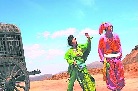 《三槍》主演花花綠綠的裝扮相當惹眼,原來是張藝謀有意為之,“我想的徹底是鮮艷的,要讓人看了就炸起來那種(感覺),完全不要按常規去想,咱先弄強烈,再往回收好辦。”俗也是刻意追求,“這個綠是水綠,果綠,就是俗一點……顯得廉價了一點,就百家衣,跟萬民傘似的,很刻意,要這種自由拼貼。”