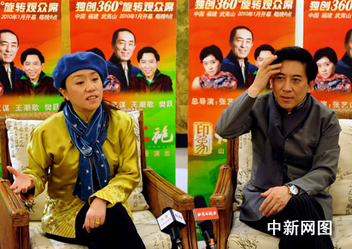 中新網北京1月24日電 (記者 應妮)許多人來看《印象·大紅袍》是沖著張藝謀的大名來的。但演員們透露,《印象·大紅袍》從立項以來,張藝謀只來過武夷山一次,還是在為演出選址的時候。對“左膀右臂”王潮歌和樊躍首創的、世界唯一的實景電影,張藝謀也只還是聽說過還沒看過。