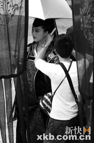 現場所見,范冰冰以華服綾羅的公主造型端坐在馬車內,黑紗遮面,被趙文卓緊緊牽著。她扮演的莊姬是趙孤的生母,因此也是片中分量最重的女性角色。導演一喊卡,立即有三四個助手沖上去攙扶范冰冰下車,這時候記者才發現,范冰冰腹部高聳,肚大如籮。雖然范冰冰早前在《蘋果》中也扮演過孕婦角色,不過像這樣夸張的“十月臨盆”的大肚造型還是比較罕見的。范冰冰在戲內萬人之上,戲外也是排場十足。專人打傘,專人提裙,專人遞水,專人開路。(新快報)