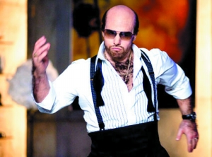 好萊塢著名帥哥湯姆·克魯斯(阿湯哥)兩年前在電影《熱帶驚雷》中丑化自己,扮演禿頭肥佬制片人雷死·格羅斯曼,沒想到他竟然扮丑扮上癮了。近日,MTV電影獎主辦方制作了一組宣傳短片,阿湯哥又化身為格羅斯曼出現(xiàn)在其中兩支短片里。在第一支短片回顧了一下格羅斯曼在《熱帶驚雷》中的黑人舞曲,接著就看見他在辦公室破口大罵《暮光之城》的帥哥演員羅伯特·帕丁森,非常搞笑。