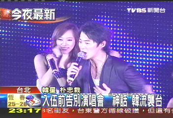 據臺灣TVBS報道,樸忠栽用中文對歌迷喊出:“我愛你!”他當兵前在臺灣的最后一次演唱會,可以說是卯足了勁,就怕一當兵會被歌迷遺忘。