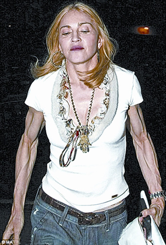 對(duì)于現(xiàn)在的麥當(dāng)娜而言,她似乎應(yīng)該和自己的私人健身教練特蕾西·安德森坐下來(lái),重新考慮一下她的健身課程。據(jù)悉,麥當(dāng)娜每周鍛煉6天,每次兩個(gè)小時(shí),為了保持較高的能量水平,她會(huì)在健身時(shí)飲用椰子汁。