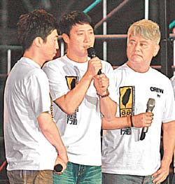 張學友與好友哈林合唱〈想念你〉和〈但愿人長久〉,昨一直未表態是否出席的黎明,稍晚出現并致詞盼臺灣民眾“平平安安”,是唯一沒有表演的天王。