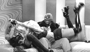 樂壇天后麥當娜與新人王Lady Gaga在節目上互相撕扯打架的場面近日被傳到Youtube網站上,上傳一天就引得超過15萬人次觀看。片段中,麥當娜出手扯Lady Gaga的頭發,火爆場面被英、美媒體形容為“貓打架”。不過歌迷請放心,這新老兩代樂壇天后可沒深仇大恨,兩人只是參加美國NBC電視臺王牌節目周六狂熱夜(SNL)其中一搞笑環節的錄影罷了。