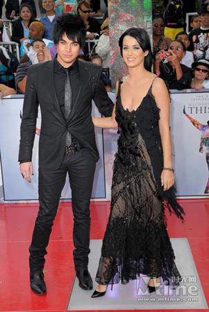美國(guó)洛杉磯當(dāng)?shù)貢r(shí)間10月27日晚上6點(diǎn),電影《邁克爾·杰克遜:就是這樣》在洛杉磯諾基亞劇院舉行全球首映。本片主創(chuàng),以及邁克爾·杰克遜生前的親朋好友、各界名流等齊聚首映紅毯。圖為“美國(guó)偶像”大賽亞軍亞當(dāng)·蘭伯特?cái)y手人氣女歌星凱蒂·派瑞前來(lái)捧場(chǎng)。亞當(dāng)·蘭伯特是美偶舉辦八年以來(lái)最受關(guān)注和最受爭(zhēng)議的選手之一,最新他還為熱門(mén)影片《2012》演唱了主題曲。凱蒂·派瑞的低胸禮服性感大氣,吸引眼球。