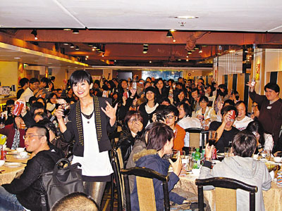 中新網(wǎng)11月20日電 本月22日是阿Sa(蔡卓妍)生日,由于檔期甚密,故正日未能與一眾粉絲共聚慶祝,于是特意抽空來到粉絲為她籌設(shè)的中式壽宴慶祝生日。現(xiàn)場設(shè)有近30圍宴席,當(dāng)中除了有香港本地粉絲外,還有內(nèi)地、臺灣、馬來西亞、新加坡、加拿大等約300人出席。