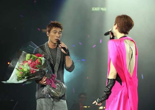香港“大公報(bào)”消息,安仔雖然要出席新城的頒獎(jiǎng)禮,但他也抽空任嘉賓。安仔的出現(xiàn)震撼紅館。鄭秀文介紹嘉賓出場(chǎng)時(shí),笑說:“今晚有一個(gè)好特別的人來做嘉賓,現(xiàn)在不透露太多。先喝口水,因?yàn)橄旅孢@支歌已經(jīng)有N年沒唱過啦!”隨即樂隊(duì)奏出《其實(shí)你心里有沒有我》的樂曲,全場(chǎng)歌迷立即瘋狂尖叫。此時(shí)手執(zhí)一束桃紅色鮮花的許志安上臺(tái),相當(dāng)浪漫。