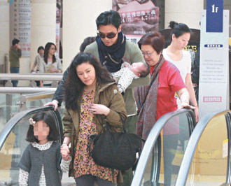 今年57歲的鐘鎮濤,女友范姜年初誕下一女Eloise,這次隨溫拿五虎登小巨蛋,范姜帶著大女兒種懿和小女兒一同前來。上周五,阿B一家四口出現在臺北微風廣場,阿B 81歲的母親一見小孫女開心極了,不斷地逗弄Eloise和身旁的鐘懿,隨后三代更為新生兒舉辦雙滿月酒,氣氛熱絡。