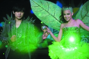 發布會現場采用4D光影技術,化身奇幻武士的周董從升降臺升起,外套上綴滿了發出綠光的鐳射燈,首度嘗試“閃亮”登場讓他大呼過癮,還稱是出道至今最“屌”的記者會。對自己造型相當滿意地周董,突發奇想跟現場記者大耍寶,自信滿滿地說:“我給大家變個魔術吧?我能控制自己身上的燈,我說亮它就亮,我說關它就關!闭f完立即演示亮燈,沒想到他都說了三次“亮燈”,身上依舊漆黑一片。周董往身旁使了個眼神,燈才瞬間亮了起來。沒看出“玄機”的記者要求他再熄燈試試,周董滿口答應大叫“關燈”,可他沒留意到燈仍然亮個不停,反問記者“是不是很神奇?”被記者戳穿“燈還亮著”,頓感沒有面子的他扭頭沖助手大喊:“殺了你!”原來旁邊的女助手是“托兒”,手握開關鍵遙控他身上的閃燈,所謂“魔術”是兩人事先計劃好的小把戲。