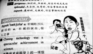 不少網友對此表示:“看看漫畫中芙蓉姐姐面對話筒的形象,用來解釋‘spectacular’是相當貼切的。這其實也符合《新概念英語》這套教材的整體個性,因為與傳統的教材相比,這本‘英語寶典’本來就很潮。”