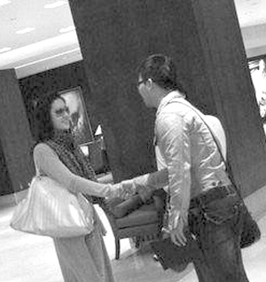 那名男子看到劉亦菲后,很禮貌地與之握了一下手,劉亦菲的表情略顯拘謹(jǐn)。