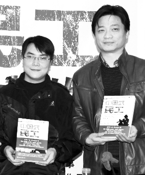 “周述恒指望《中國式民工》的稿酬回家蓋樓,主要就是看沈先生了”。央視著名主持人崔永元邊說邊把話筒遞給了外交部前新聞發言人、世界知識出版社總編輯沈國放。沈國放說,“希望大家都來關注這本書,關注農民工。”4月6日下午,四川籍民工周述恒的《中國式民工》一書的首發式在王府井書店舉行。