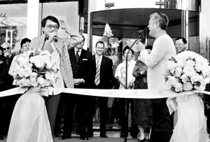 昨天下午,在金寶街,知名笑星趙本山和國際影星成龍應邀參加了某購物中心開業典禮。由于在場有外國嘉賓,趙本山在致辭時,出人意料地以一口英語作開場白,成龍“挺身而出”,充當起翻譯。