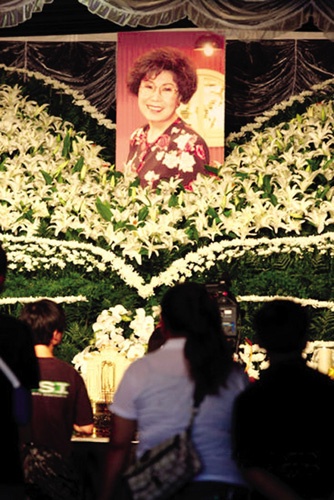 8月5日在臺(tái)北病逝的臺(tái)灣資深藝人文英的告別式15日上午在臺(tái)北板橋舉行,其生前眾多好友紛紛趕來(lái)送她最后一程。“綜藝大姐大”張小燕憔悴現(xiàn)身,遭逢婚變的賈靜雯專程趕來(lái)悼念永遠(yuǎn)的文英阿姨,與文英有四十年好交情的歌仔戲演員葉青也難得露面。